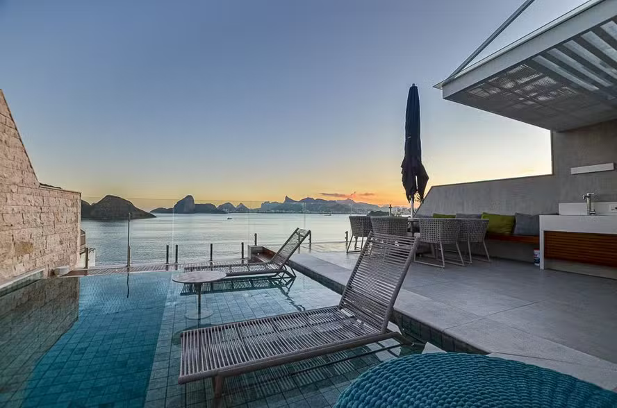 Uma cobertura em Icaraí com 640m², vista panorâmica para a Baía de Guanabara e o Cristo Redentor, piscina, hidromassagem e quatro vagas de garagem está listada por R$ 21 milhões. Outro imóvel, também na orla, de 500m² e com projeto de Roberta Devisate, oferece piscina aquecida, adega para 200 garrafas e sistema gerador silencioso — está à venda por R$ 15 milhões.